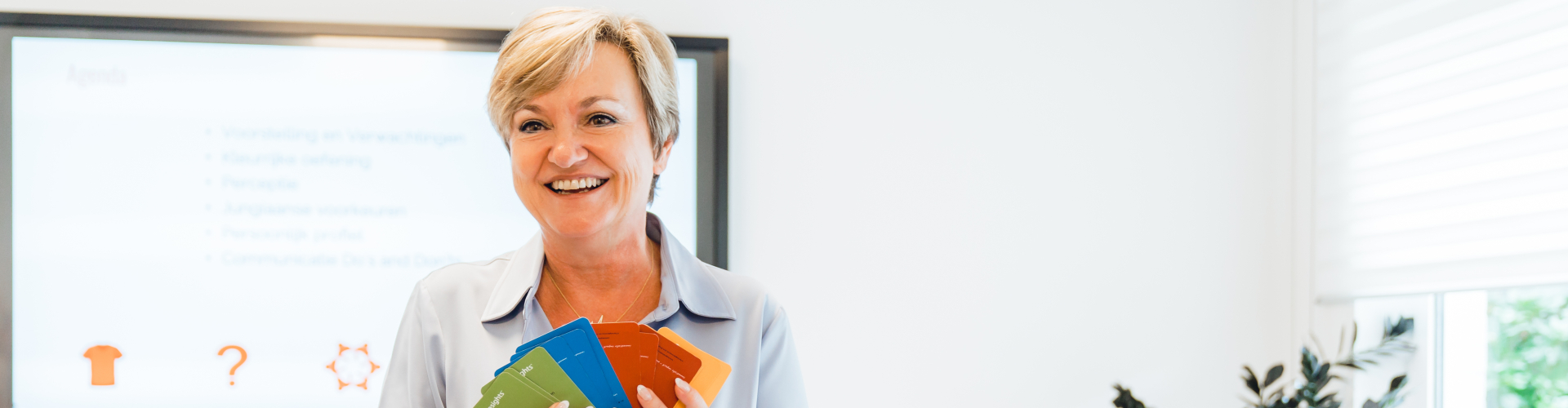 Door Insights Discovery dagelijks bewust in te zetten, kan je heel wat spanningen vermijden. Niet door mensen te veranderen, wel door anders naar elkaar te kijken en anders te reageren. Dat zorgt voor meer rust, betere samenwerking en ja, ook meer werkplezier. Per kleur wordt gekeken hoe je in het dagelijkse werk beter kan afstemmen, zodat de samenwerking niet alleen efficiënter, maar ook aangenamer wordt.